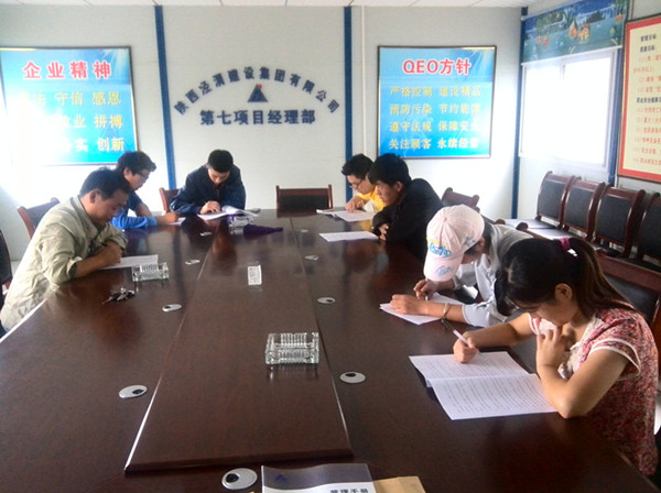 您现在的位置:首 页 > 最新动态最新动态泾渭建设集团组织2013版《管理手册》学习成果考核活动来源:本站 作者:管理员 日期:2013-09-02 浏览次数:3333 次 8月27日-28日,集团公司分别利用两个下午的时间,集中对集团总部、子公司、项目部全体员工进行了2013版《管理手册》学习成果考核活动。2013版《管理手册》从3月1日起颁布实施,到8月底已经近6个月时间,在次期间,各部门、各子公司、各项目部多次组织了集中学习,并要求员工集中学习和自学相结合,做到掌握、理解、执行。首先要做到掌握,这是本次考试的主要目的。 本次考核的形式为闭卷答题式,涉及填空、选择、判断、改错和简答五大题型,考核内容皆为《管理手册》大家必须理解和掌握的内容。考试中,大家认真作答,遵守考场纪律,由于前期准备时间长,参考员工都能较好地完成答卷。 此次考试的目的不是为了追求考试结果,而是通过考试加深广大员工对公司各项规章制度和企业文化的了解,进一步增强员工学制度、用制度、守制度的意识。同时,通过不断的培训和学习,为公司营造了良好的学习氛围,提高了企业的凝聚力和向心力。