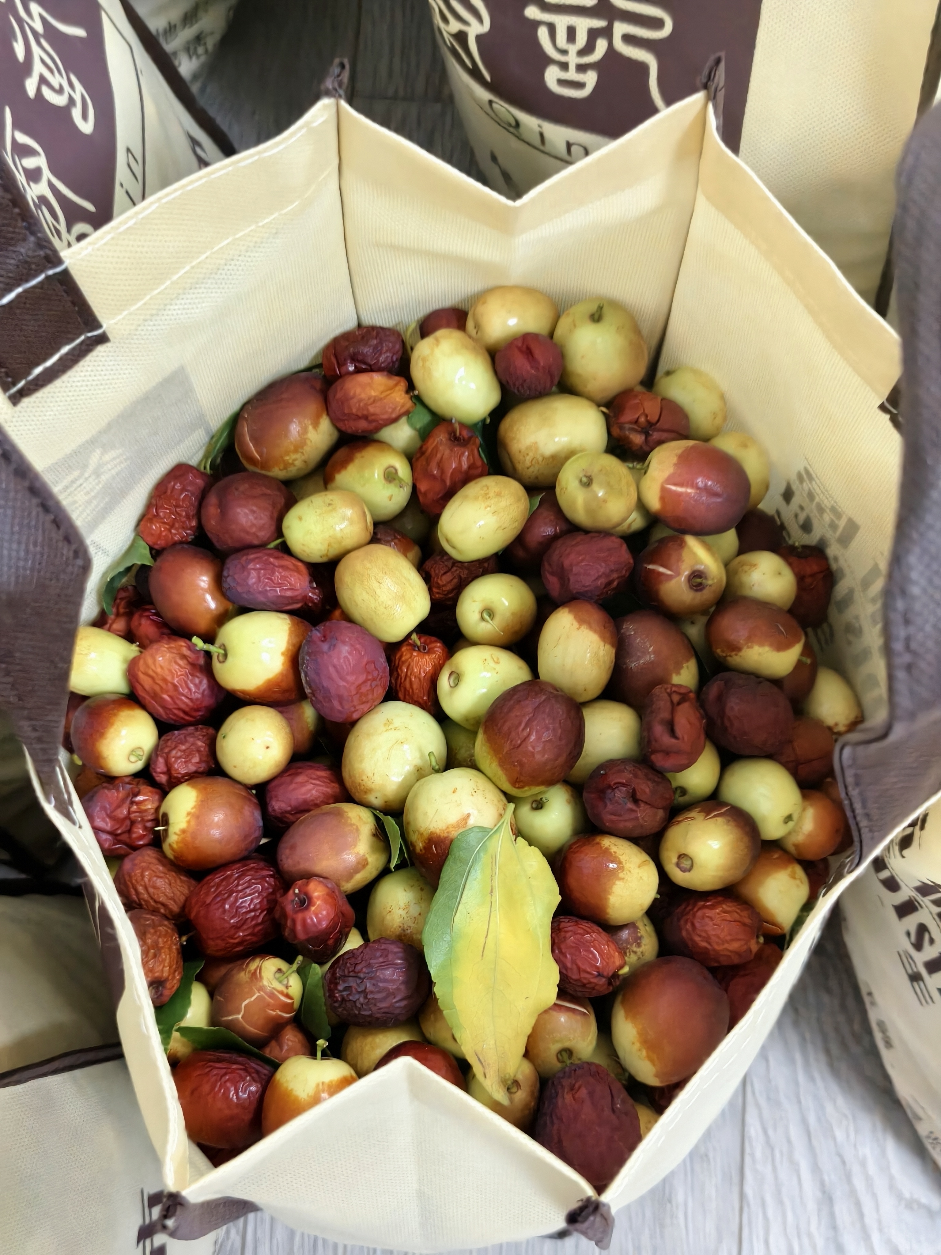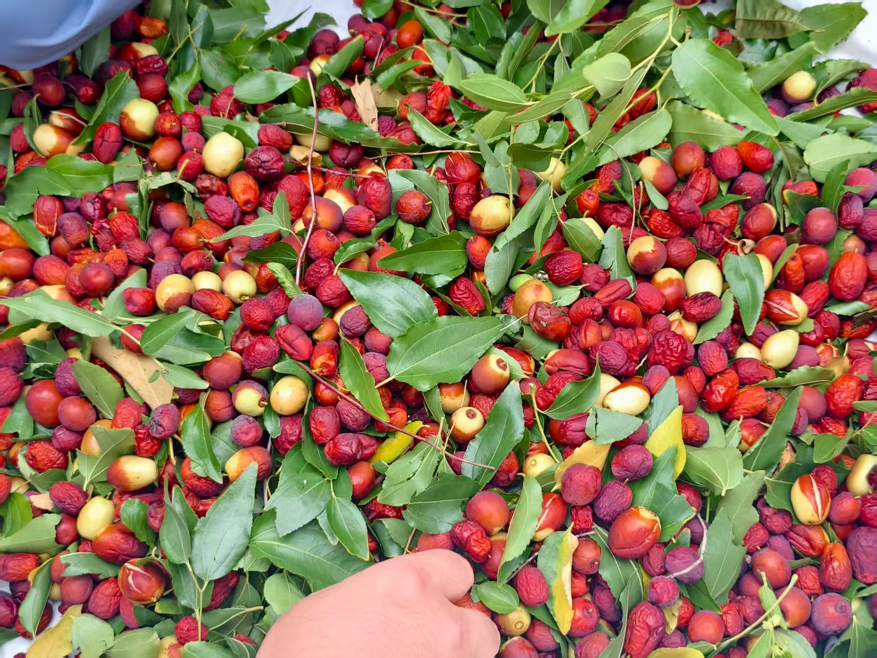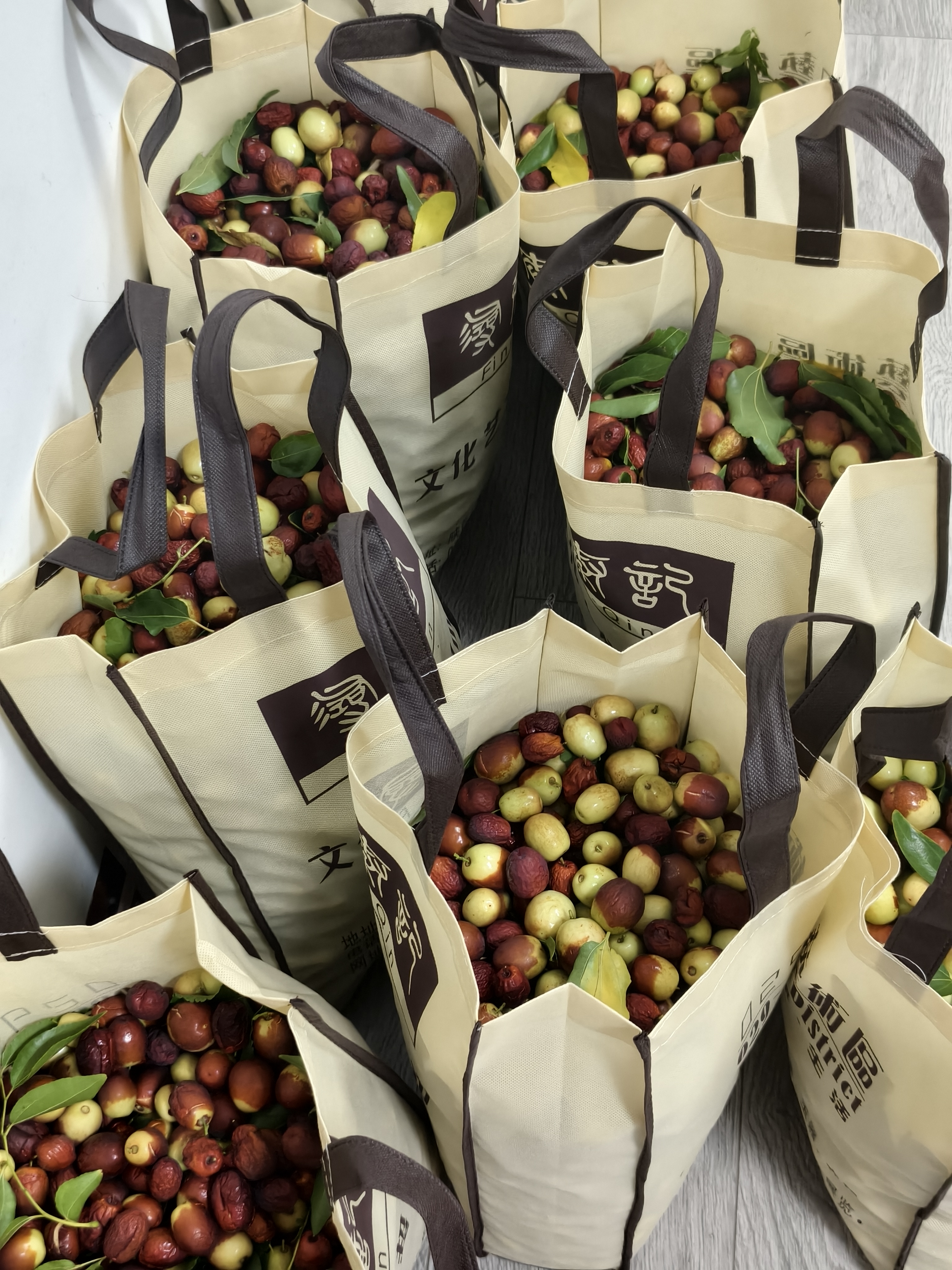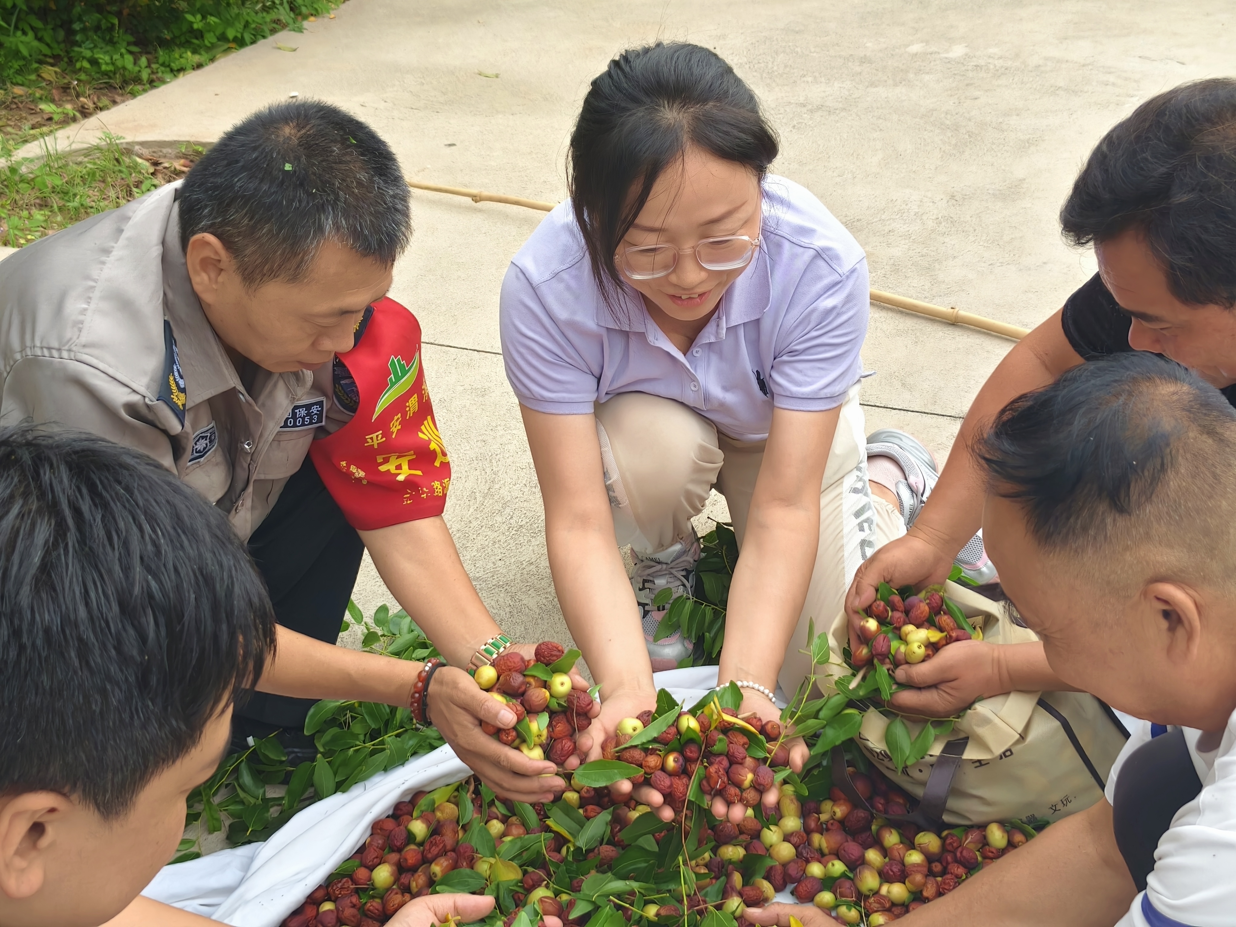 员工们手持竹竿,轻巧地敲打着枝头,红彤彤的枣子便如雨点般落下。有人利落地敲出枝头高处的果实,有人在树下细心拾捡,每个人的脸上都洋溢着收获的喜悦。这一刻,工作的疲惫悄然消散,取而代之的是孩童般的纯真笑容。